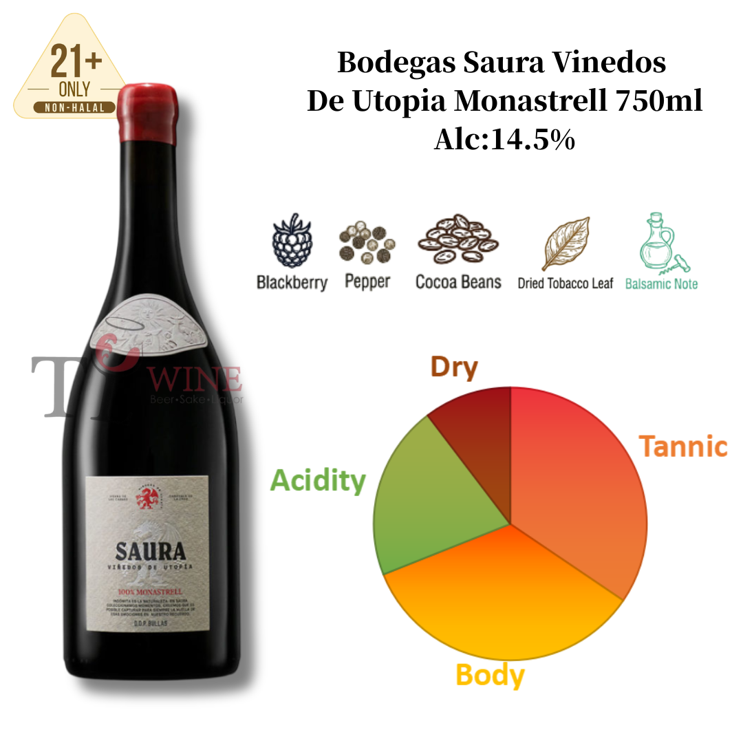 Bodegas Saura Vinedos De Utopia Monastrell 750ml Alc:14.5% Red Wine