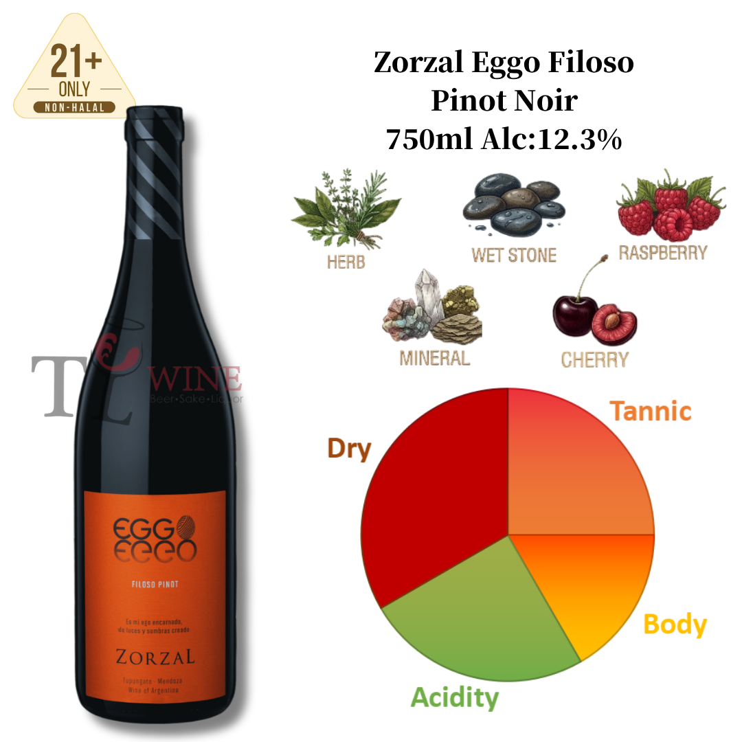 Zorzal Eggo Filoso Pinot Noir 750ml Alc:12.3% Red Wine Argentina